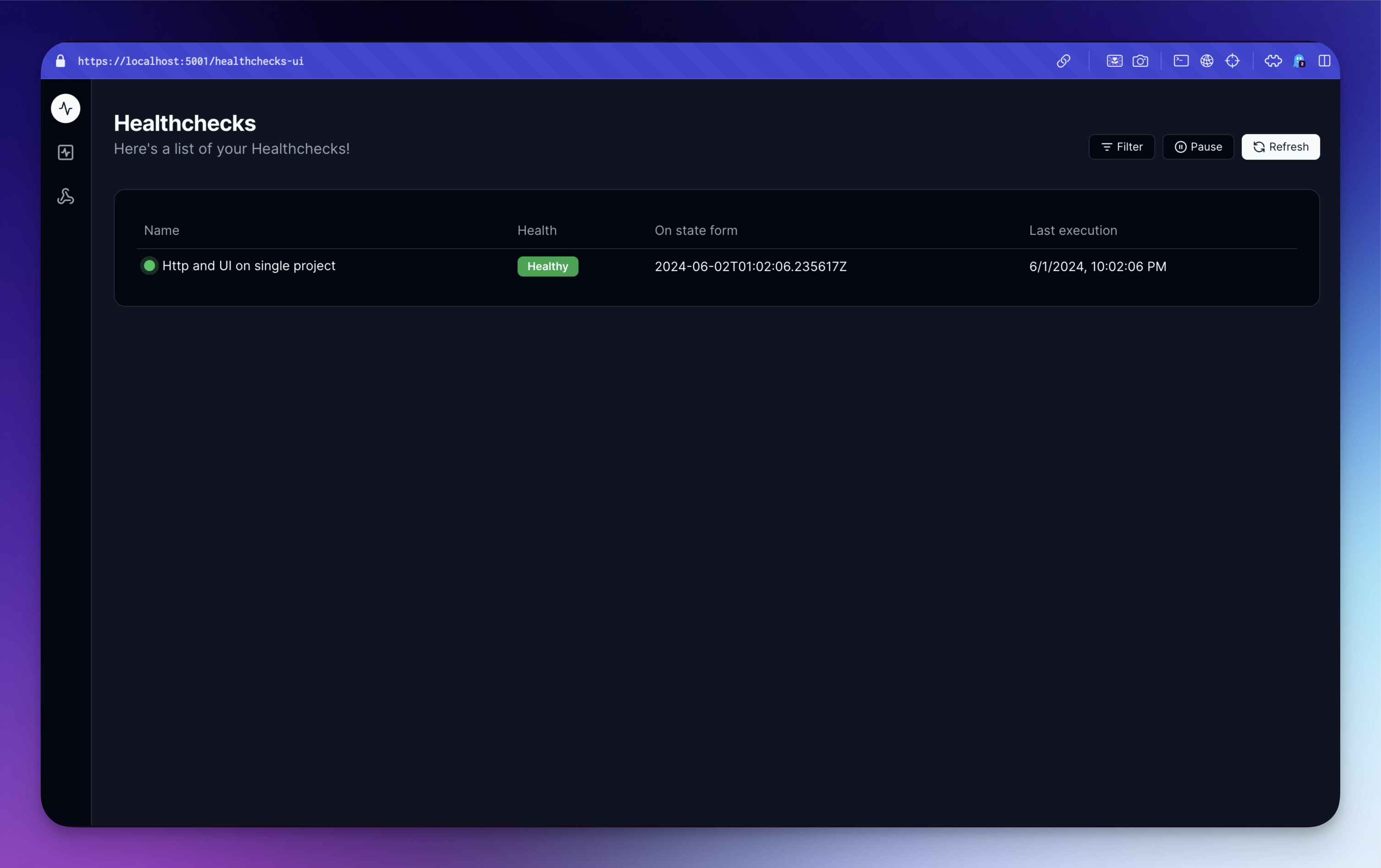 Open pulse UI https://localhost:5001/healthchecks-ui